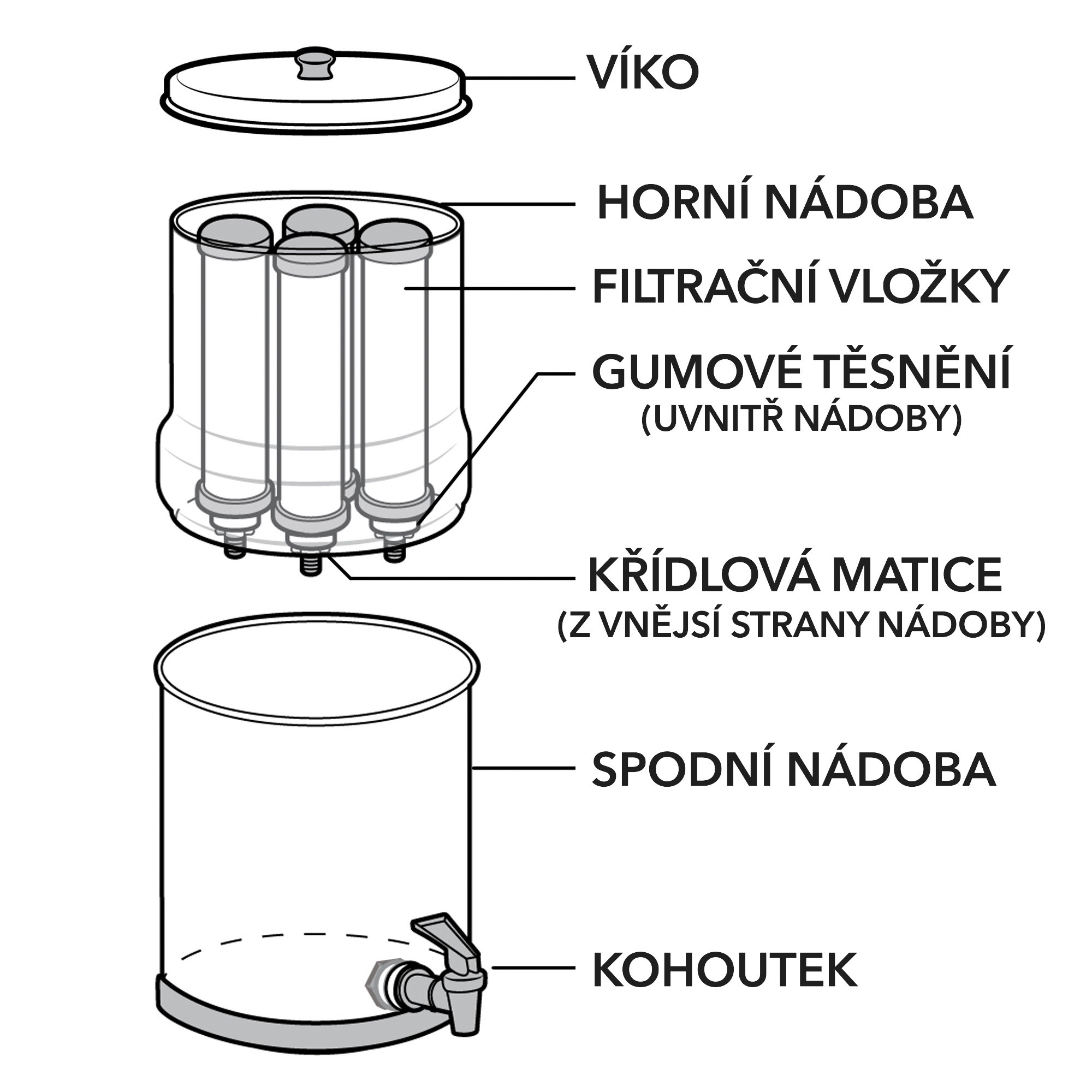 Horní nádoba pojme 8,5 l vody.